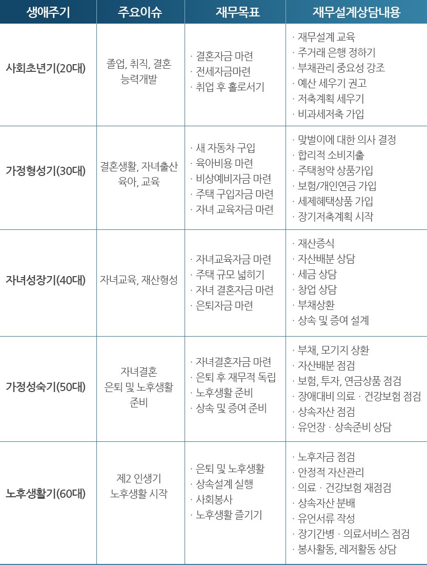 »ý¾Ö¼³°è¶õ ¼º°øÀûÀÎ »îÀ» »ì±â À§ÇØ Á¾ÇÕÀûÀ̰í Àå±âÀûÀÎ °üÁ¡¿¡¼ À¯¾Æ±â¿¡¼ ³ë³â±â±îÁö »ý¾Ö Àüü¸¦ °èȹÇÏ´Â °ÍÀÌ´Ù.