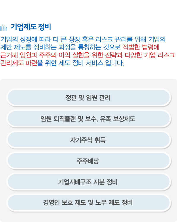 ¼ÒÀ¯¿Í °æ¿µÀÌ ºÐ¸®µÈ ¹ýÀÎÀÇ ÁÖÁÖ ÀÔÀå¿¡¼, ÀÓ¿ø ÀÔÀå¿¡¼ ¼¼¹«ÀûÀ¸·Î À繫ÀûÀ¸·Î ¹ß»ýµÇ´Â ¼ö¸¹Àº ¹®Á¦¿Í Çö¾Èµé¿¡ ´ëÇØ ÃÖ¼±ÀÇ ¼Ö·ç¼ÇÀ¸·Î ÈļӰü¸®±îÁö ÄÁ¼³ÆÃ ÇÕ´Ï´Ù.